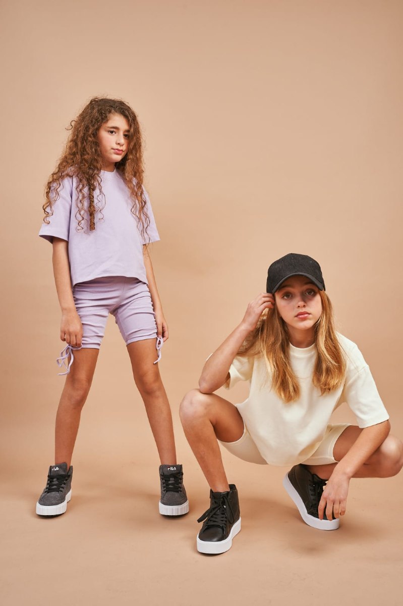 חליפת טייץ באורך ברך עם שרוך לכיווץ בצדדים, חולצת טישירט קצרה ורחבה מגיעה במידות 4-14